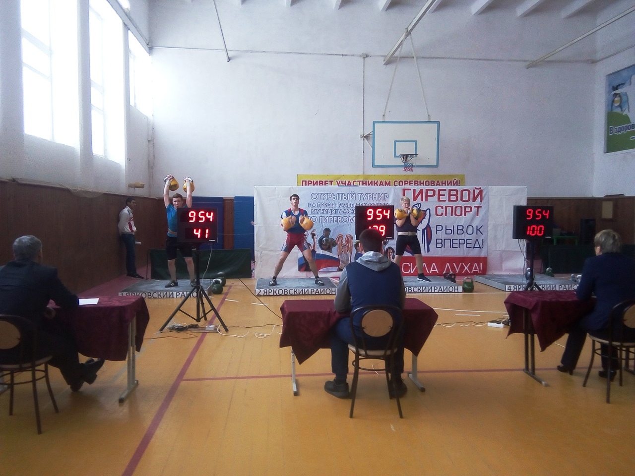 Наши спортсмены показали очень хорошие результаты: Бабушкина Карина  в рывке гири весом 12 кг. с результатом 191 подъем заняла 1 место; Петелин Александр в толчке гирь весом 24 кг. по длинному циклу с результатом 67 подъемов стал абсолютным победителем; Полуянов Иван в толчке гирь весом 16 кг.  также по длинному циклу с результатом 42 подъема занял 3 место.