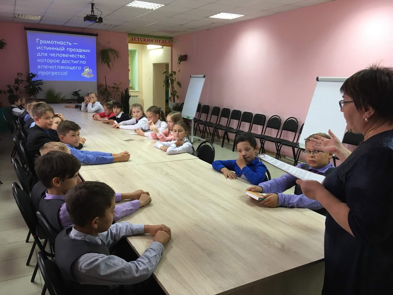 8 сентября во всем мире традиционно отмечается День грамотности. В этот день  в школах России проводятся олимпиады, открытые уроки, викторины, конкурсы по русскому языку, цель которых выделить старательных и прилежных учеников. В рамках этого дня, Центральная библиотека 13 сентября для учащихся 5 «а» класса Вагайской средней школы была провела познавательно-игровую программу.