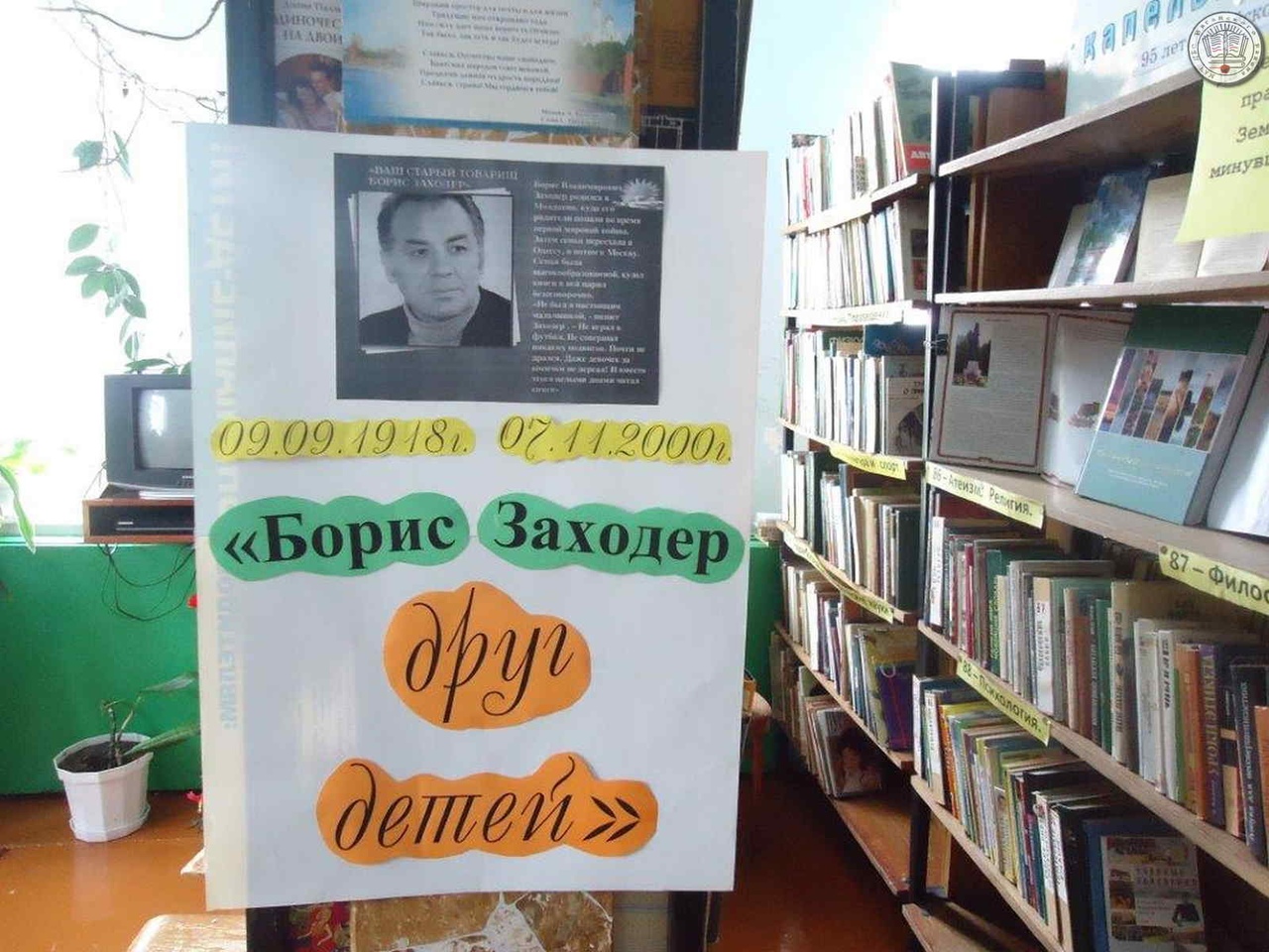 В Касьяновской сельской библиотеке 20 сентября прошла литературная игра, посвящённая 100-летию со дня рождения Бориса Заходера — поэта, прозаика, переводчика: «Борис Заходер — друг детей». Ребята послушали беседу о жизни и творчестве Б.Заходера, прочитали стихи «Морской бой», «Летающая корова», «Товарищам — детям», приняли активное участие в викторине по произведениям Б. Заходера. Детям были предложены такие задания, как «Найди рифму», «Выбери ответ», «Имена животных», отгадывали, кто отправил телеграммы. Все присутствующие получили сладкие призы.