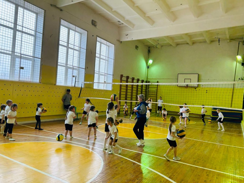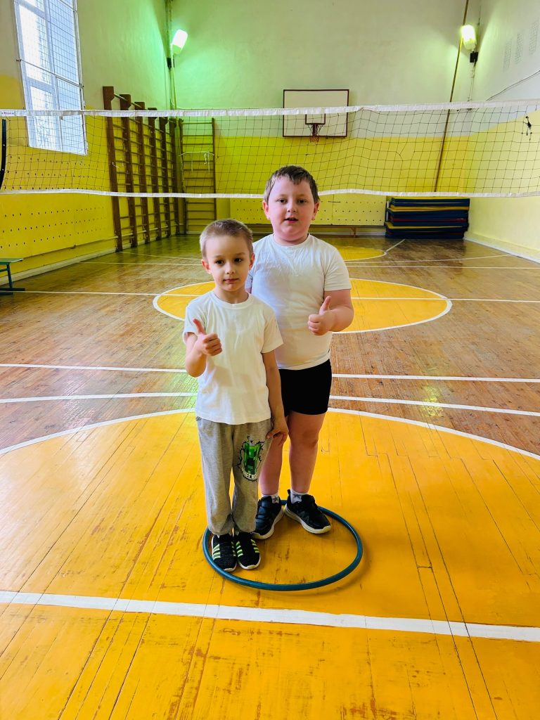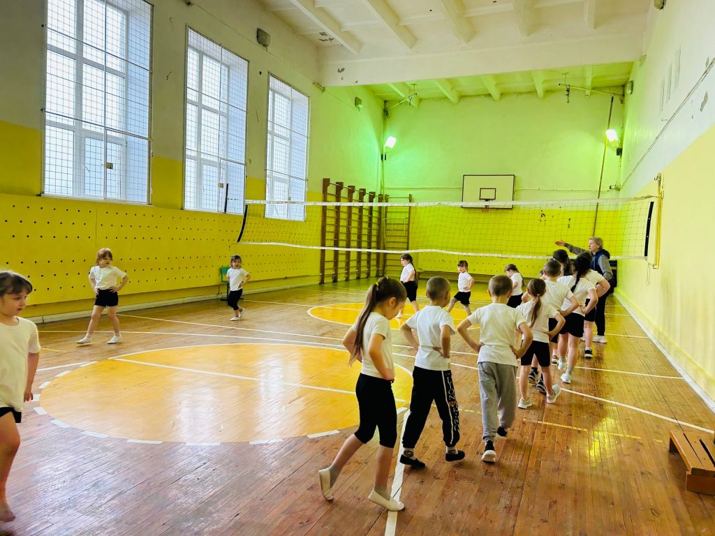 Их радушно встретили Татьяна Леонидовна, опытный учитель физкультуры, и ученики первого класса. Совместная разминка, помогла малышам почувствовать себя частью большого школьного коллектива.