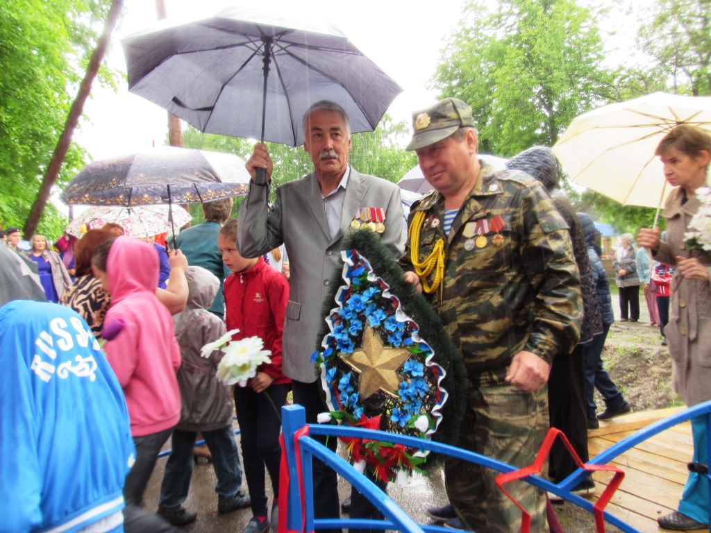 Участники мероприятия возложили цветы и венки к «Стене Памяти». Кадеты, в рамках акции «Свеча», возложили от общественной организации «Боевое братство» гирлянду Славы. И даже небо над головами присутствующих не выдержало эмоций и разразилось