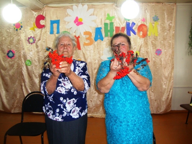 Пенсионеры активно приняли участие, принесли разные вкусности. Затем с ними были проведены конкурсы: «Собери пословицу», «Огородное пугало», «Рябиновый букет», «Перепевка». По окончанию соревнований прошло праздничное чаепитие. Пели песни под гармонь, играли в застольные игры и ,конечно же, танцевали.