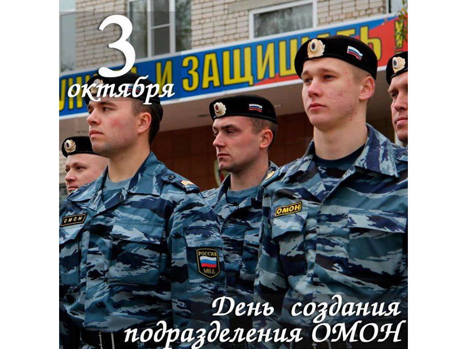 Сегодня, 3 октября — День ОМОНа. Мы поздравляем всех служащих данного подразделения МВД, вне зависимости от звания, занимаемой должности и выслуги лет, желаем мирного неба и семейного благополучия!!!
