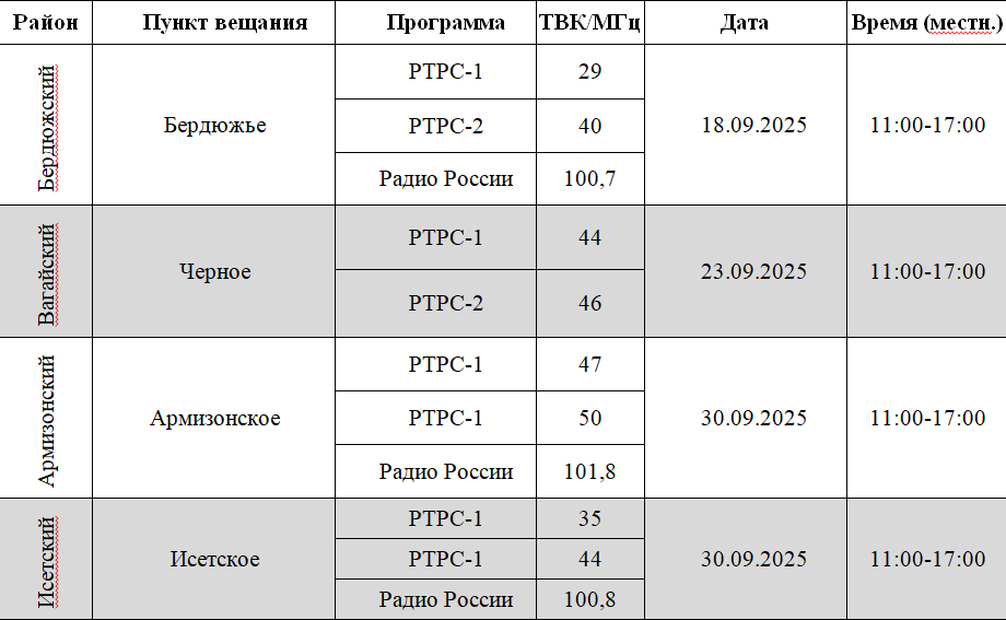 РТРС предупреждает жителей Тюменской области о проведении профилактических работ и приносит извинения за возможные неудобства.